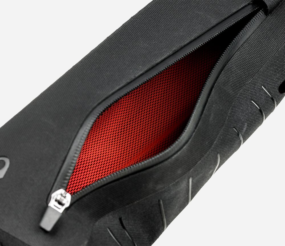 Carry all the essentials for your adventure with our custom-designed frame bag. The bag mounts securely in the front triangle using the threaded mounting points.