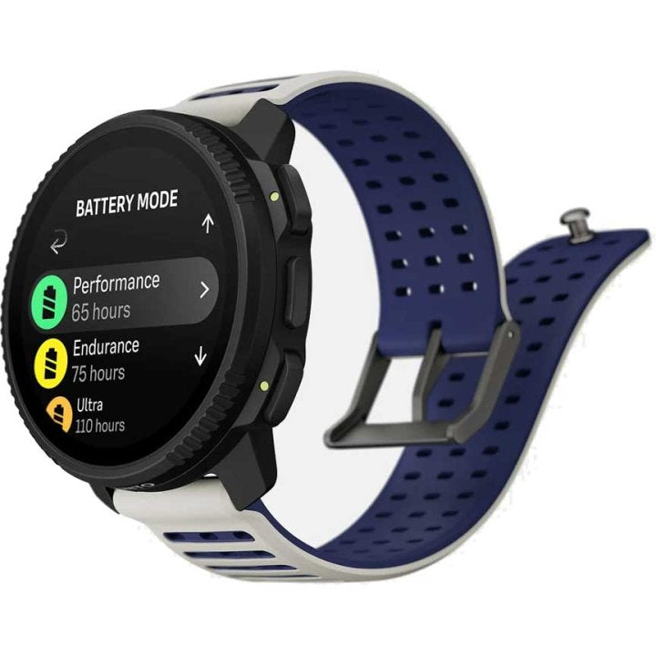 Training, continuous tracking: up to 65 hours in performance mode, highest GPS accuracy (multi-band); up to 250 hours in tour mode, lower GPS accuracy, heart rate off