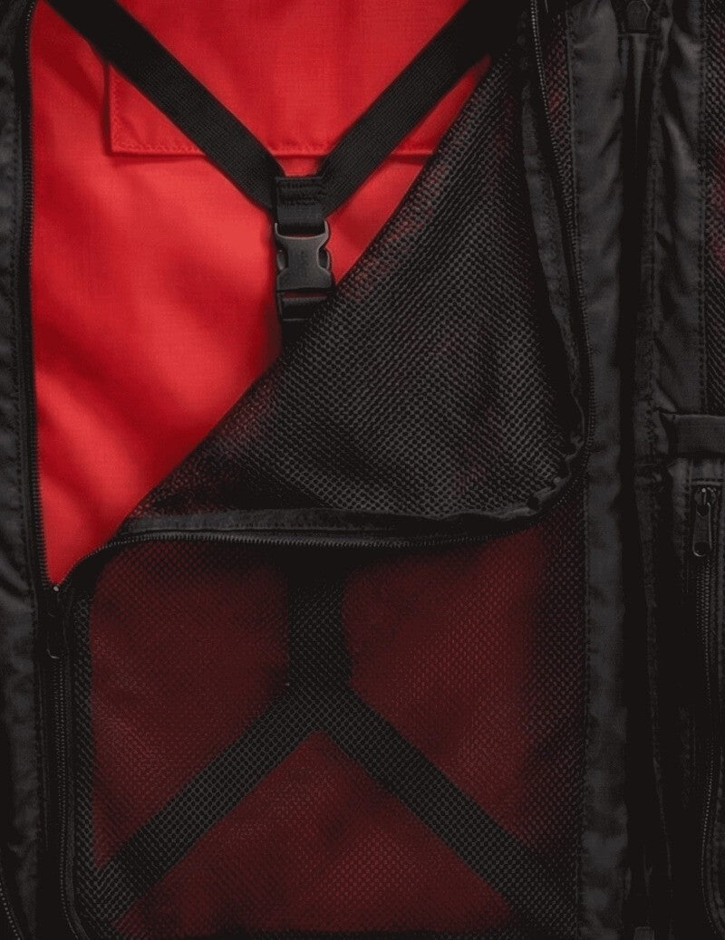 Triathlon transition, trail race or weekend getaway? Our all-new Globe Racer Bag has your back. Designed to keep busy athletes organised and ready, our expanded sports and travel bag combines sleek aesthetics with thoughtful functionality. Crafted from durable, abrasion-resistant ripstop material and protected with rainproof DWR treatment, this bag is PVC-free and ready to handle whatever the adventure throws your way. The 45L capacity includes a suitcase-style main section that opens fully with a two-way zipper, revealing a large compartment with elastic straps on one side, and multiple mesh and zippered pockets to keep nutrition, clothing and toiletries neatly stored on the other. A small upper pocket at the front is perfect to keep keys and travel documents close at hand. A padded laptop compartment with a waterproof zip keeps your tech secure, while a water-resistant side pocket separates wet gear or shoes from the rest. Inspired by our trail running backpacks, the shoulder straps feature mesh flask pockets and a zippered pocket for quick access to your phone or small essentials. Not only does the outside of the bag features a stretchy mesh pouch for your helmet or muddy shoes, it also has practical volume adjusters, reinforced carry handles on the top and side, reflective details and convenient carabiner lash points to attach extra gear. Breathable airflow padding on the back takes care of comfort, while the adjustable chest and hip closures provide stability and optimal weight distribution on the move. These straps can be tucked away for a streamlined look. Perfect for athletes and adventurers, the Globe Racer Bag is your ultimate go-to. Take it anywhere, and take on anything. Good to know: the dimensions are compatible with airline cabin limits.
