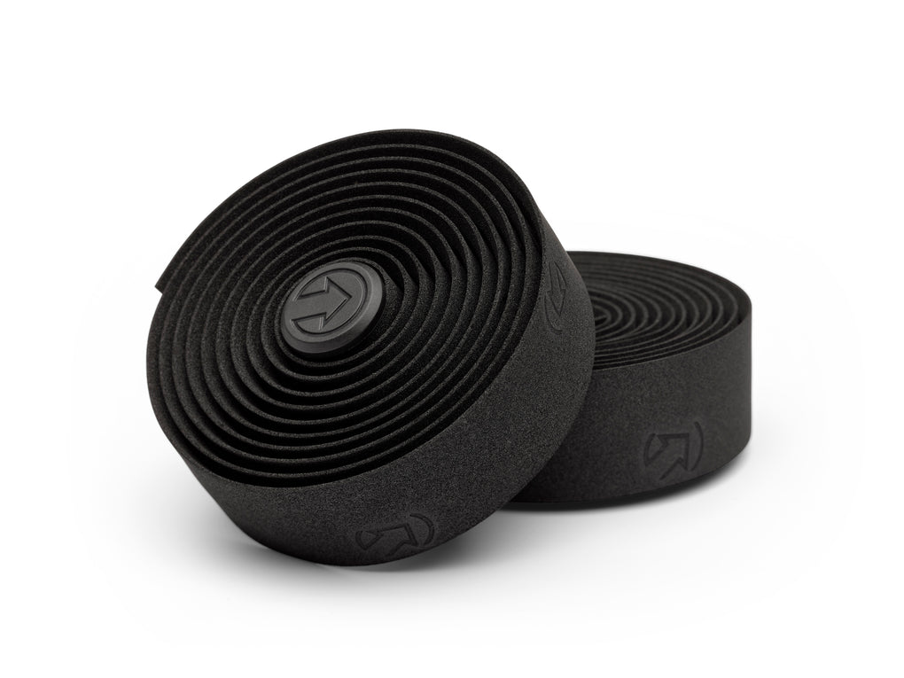 Boasting a lightweight construction and sweat-wicking attributes, the PRO Peaked Sport Handlebar Tape is designed for climbers to complete their ideal cockpit. Available in solid black or white, it allows for a neat and clean cockpit. The embossed EVA upper wicks sweat away from your hands, allowing you to maintain your grip, while the EVA and cork comfort layer provides a soft-touch feel. The 2.5 millimeter thickness ensures a low weight that can be further enhanced by trimming the 2 000 millimeter bar tape to the ideal personal length rather than using the full roll. The gel backing and PRO Recycled Polypropylene End Caps make securing a tight and durable wrap easy.